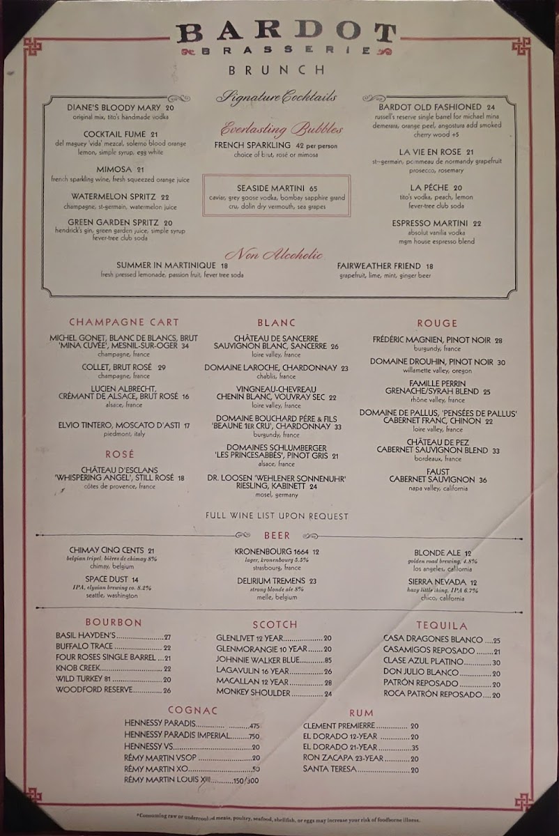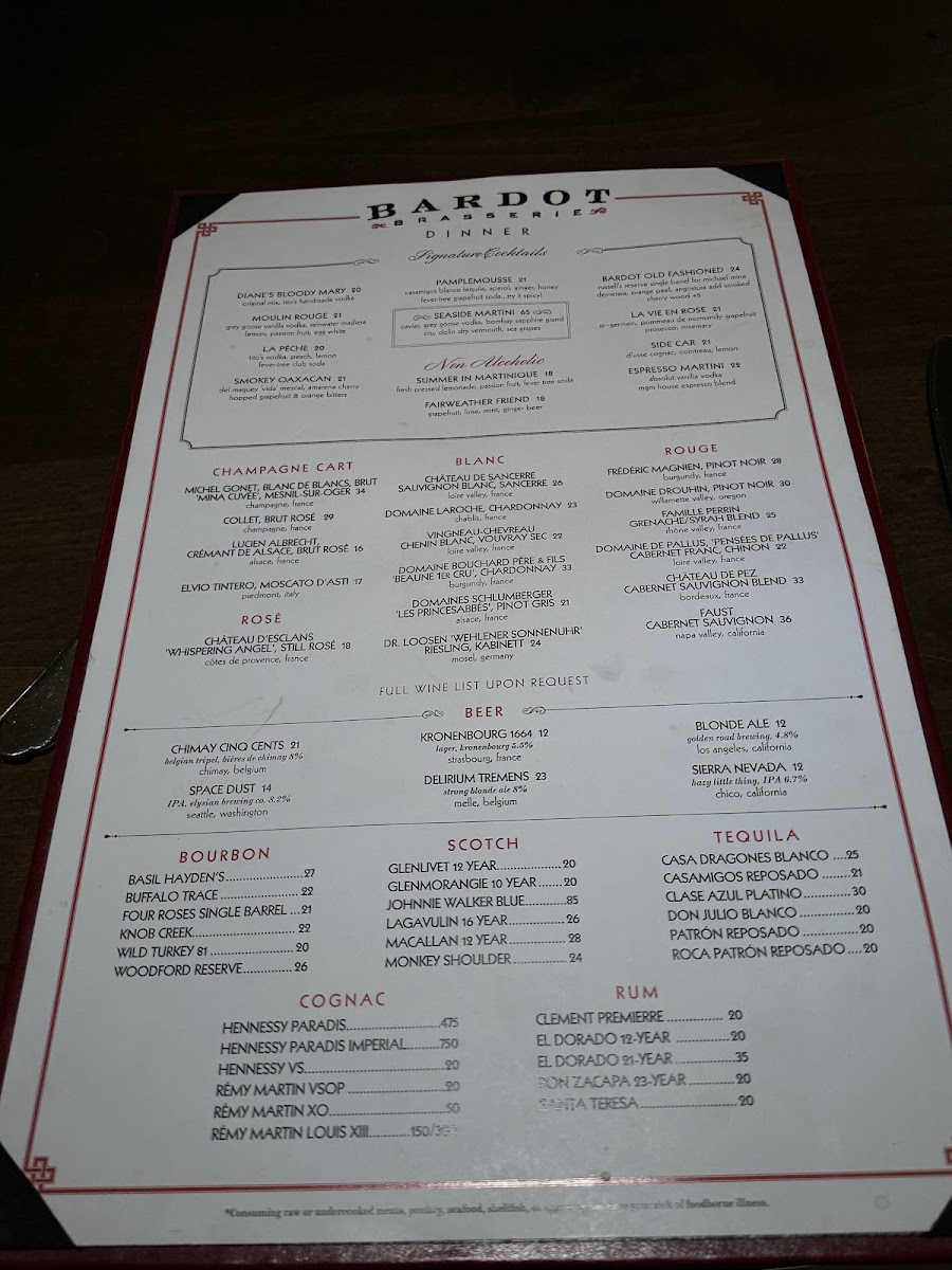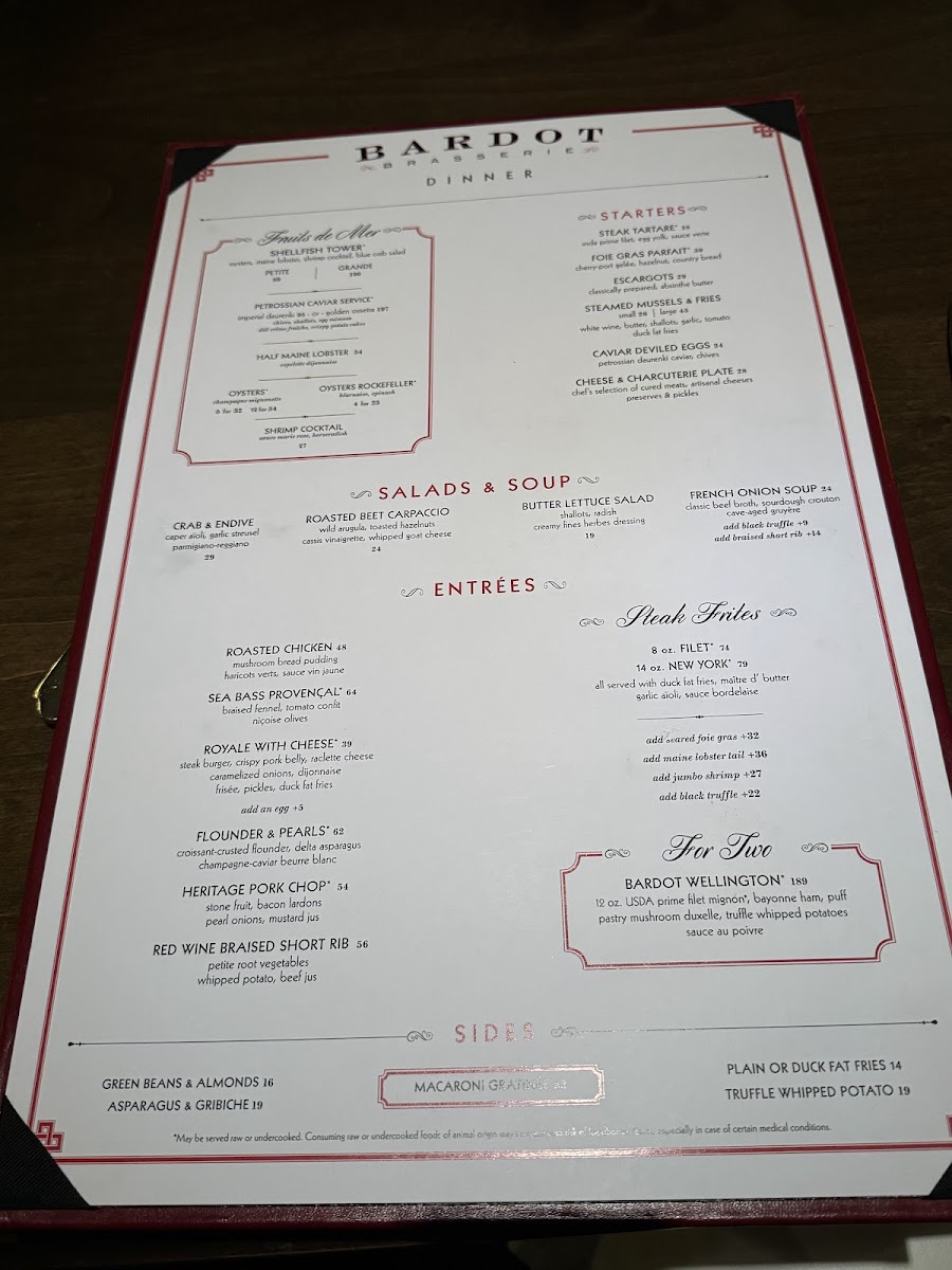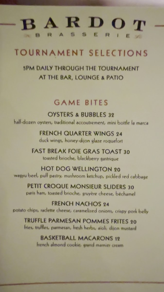 Bardot Brasserie Menu